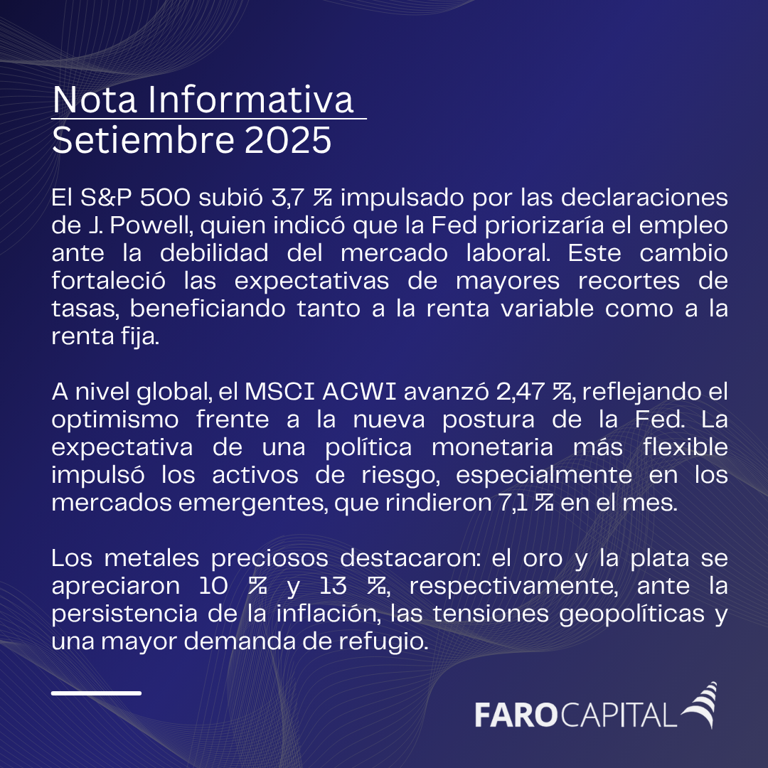 Faro Capital no está asociada a ninguna institución ni grupo financiero por lo que la gestión de inversiones se lleva a cabo de manera absolutamente independiente bajo un criterio de alineamiento de objetivos con los intereses de nuestros clientes.